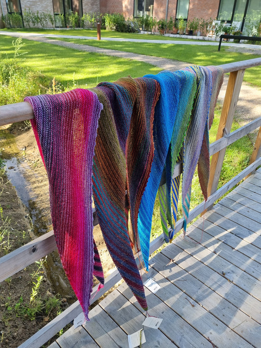 Opskrift på Marsk-Tørklædet strikket i Uneek Fingering Håndfarvet merinould - Urth Yarn