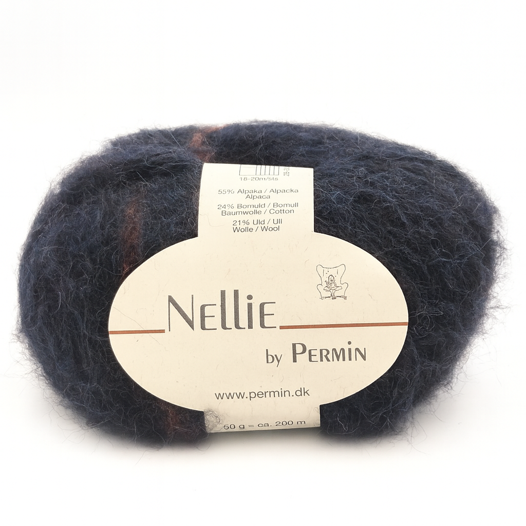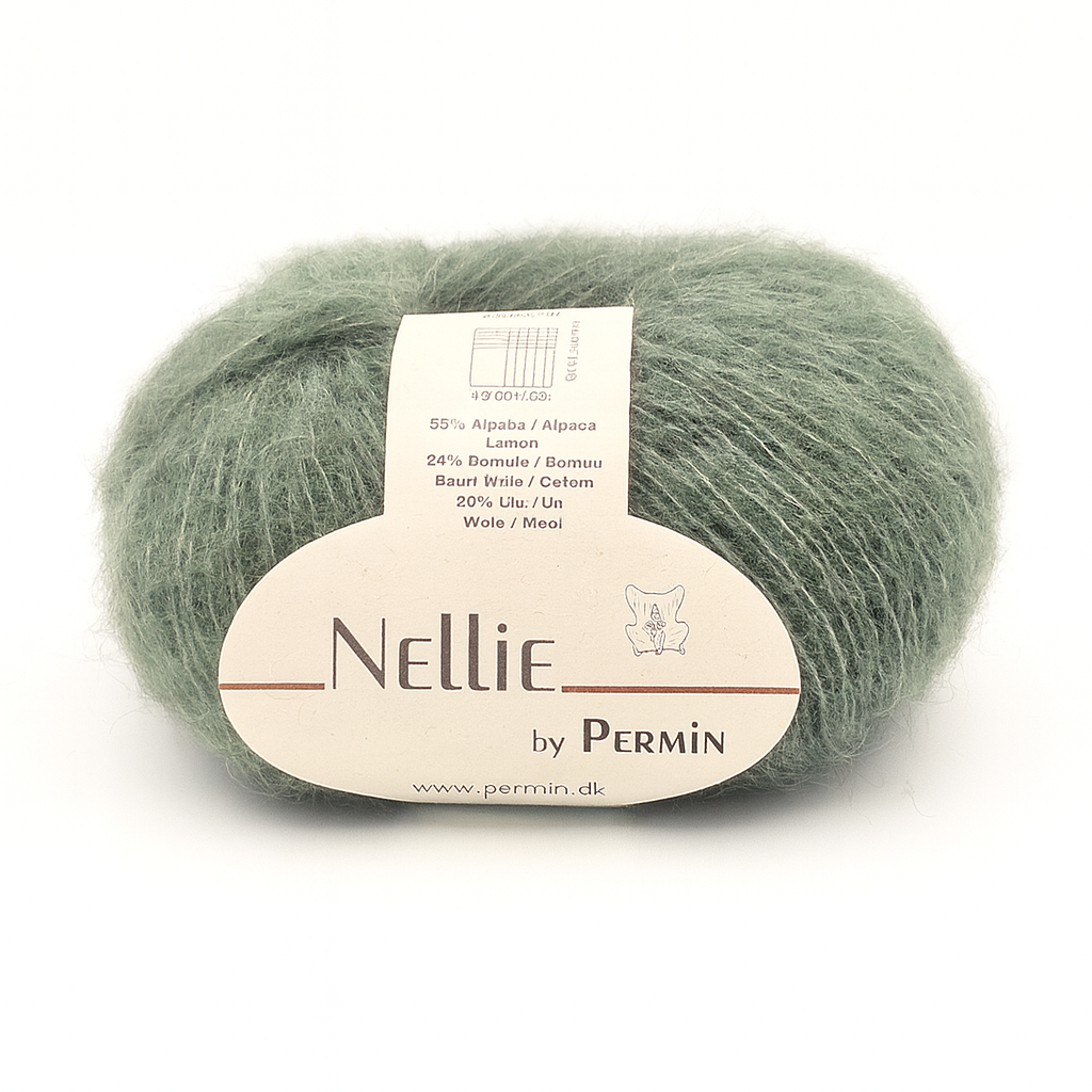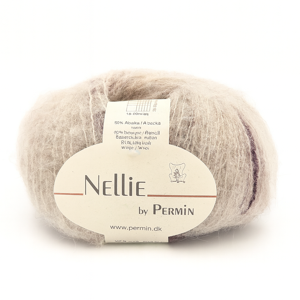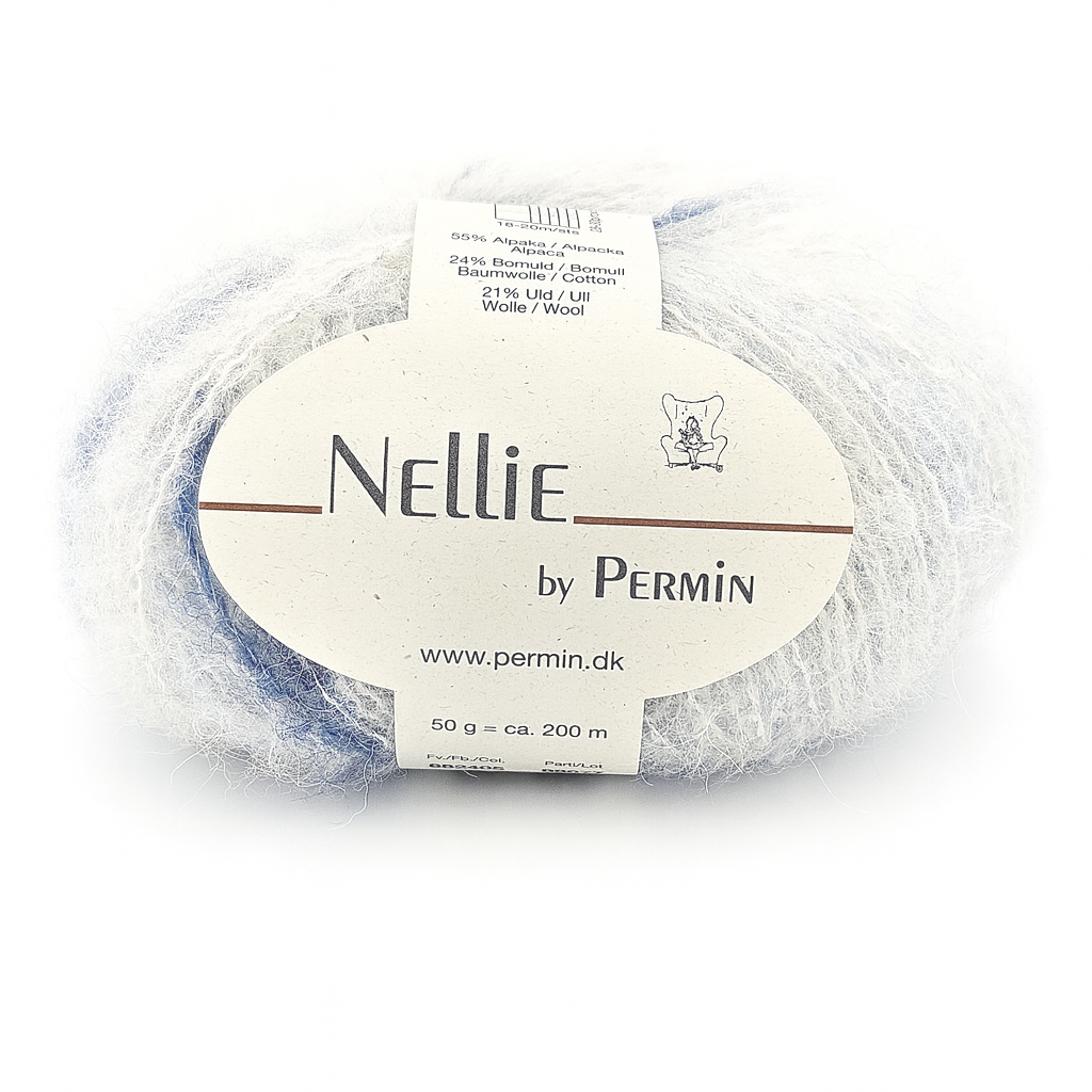 Nellie fra Permin er et let og luftigt garn spundet af alpaka, bomuld og uld. Sammensætningen giver en blød, vamset tråd med et elegant og levende udtryk, der gør dit strik lunt uden at blive tungt.
